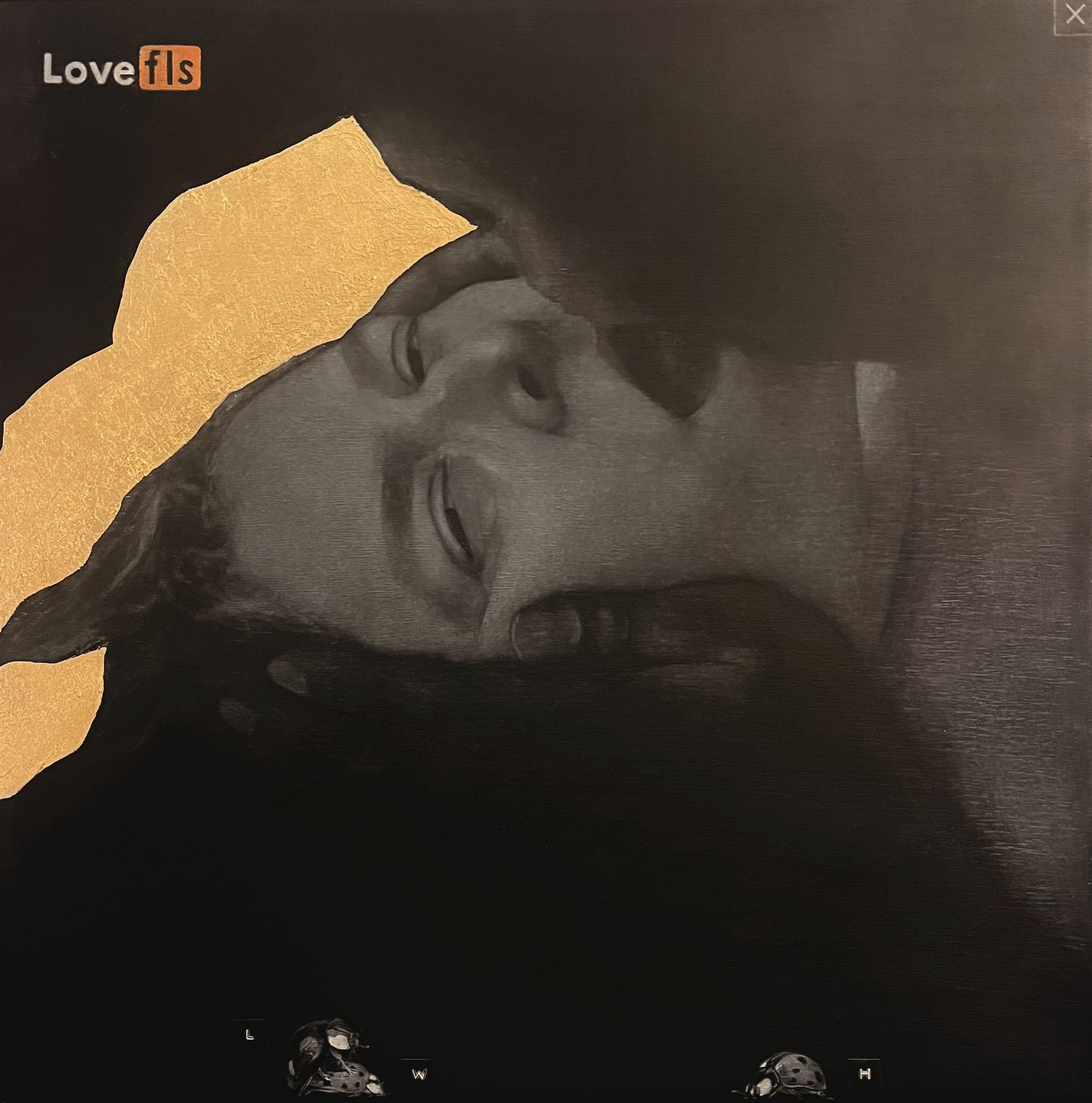 "LoveHub" Oil on wood board and metal leaves- Olio su legno e foglie di metallo 14"x14" - 36cm x 36 cm